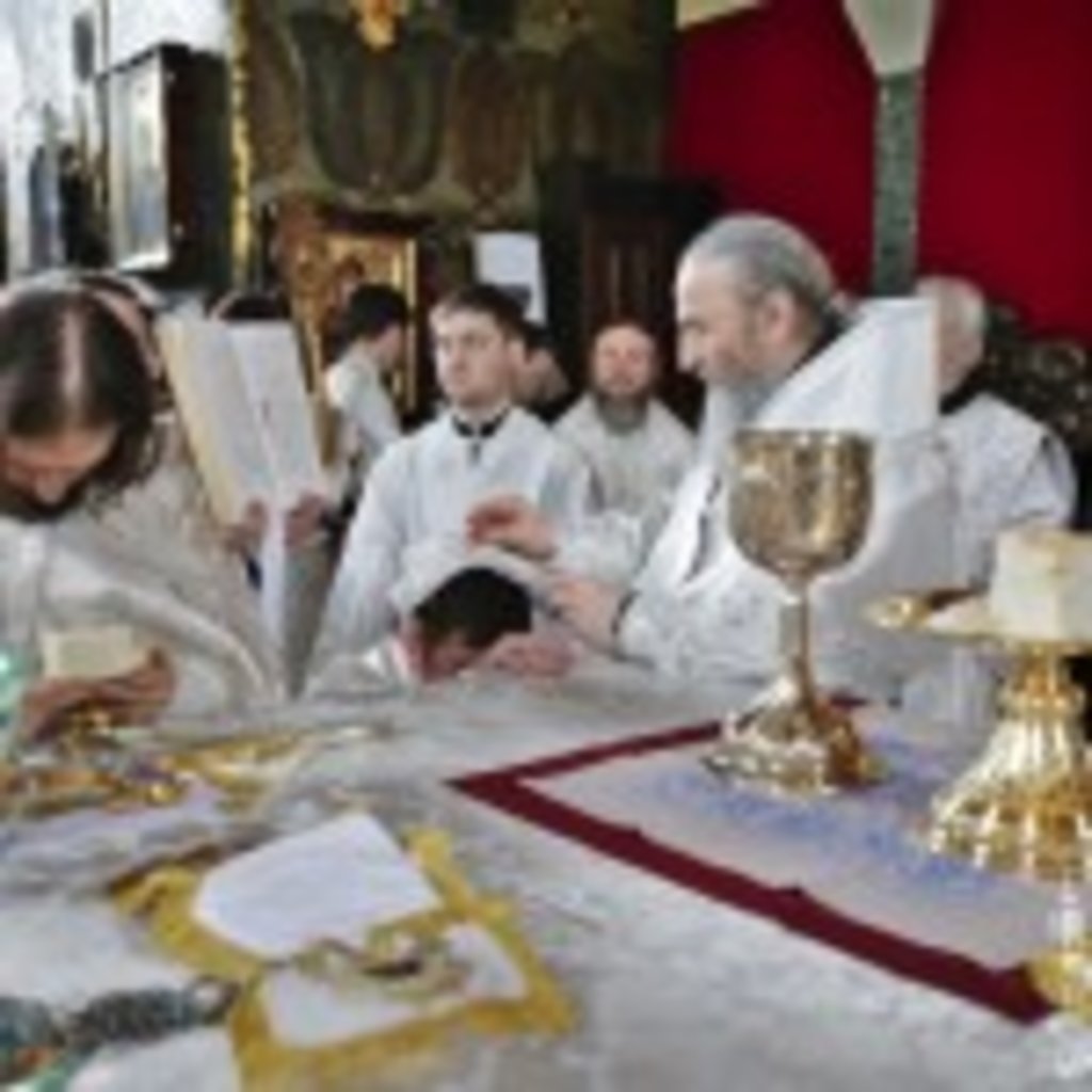 Під час богослужіння Предстоятель звершив священицьку та дияконську хіротонії над студентами Київської духовної академії: ієродияконом Пантелеімоном (Мельником) і Сергієм Вознюком.