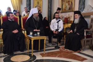 20 вересня відбувся прийом, під час якого члени делегація зустрілися з Патріархом Святого Града Єрусалима і всієї Палестини Феофілом. Митрополит Лука передав патріарху Феофілу вітання від імені Предстоятеля Української Православної Церкви Блаженнішого Митрополита Онуфрія. Під час спілкування Предстоятель Єрусалимської Православної Церкви відзначив важливість паломницьких подорожей для християн, які принесуть благословення від свого відвідування своїм сім’ям і своїй країні. У бесіді з митрополитом Лукою Патріарх зазначив особливу роль, яку має православна християнська віра в збереженні національної, релігійної, культурної ідентичності народу і навіть для його біологічного виживання.