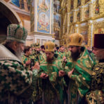 Його Блаженству співслужили намісник Києво-Печерської обителі митрополит Вишгородський і Чорнобильський Павел, митрополит Верійський і Наусський Пантелеімон (Елладська Православна Церква), ректор КДАіС, керуючий справами УПЦ митрополит Бориспільський і Броварський Антоній, митрополит Чернігівський і Новгород-Сіверський Амвросій, митрополит Кіровоградський і Новомиргородський Іоасаф, ректор Санкт-Петербурзької духовної академії і семінарії архієпископ Петергофський Амвросій, архієпископ Ровеньківський і Свердловський Пантелеімон, архієпископ Сєверодонецький і Старобільський Никодим, архієпископ Боярський Феодосій, голова Учбового комітету УПЦ архієпископ Ірпінський Климент, єпископ Бородянський Варсонофій, єпископ Вознесенський і Первомайський Олексій, єпископ Новосанжарський Веніамін, єпископ Баришівський Віктор, а також викладачі, випускники, студенти та гості Київський духовних шкіл у священному сані.