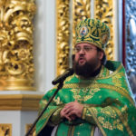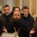 Після читання Святого Євангелія проректор з наукової роботи Київської духовної академії, професор, архімандрит Сильвестр(Стойчев)звернувся до вірних зі словом проповіді.