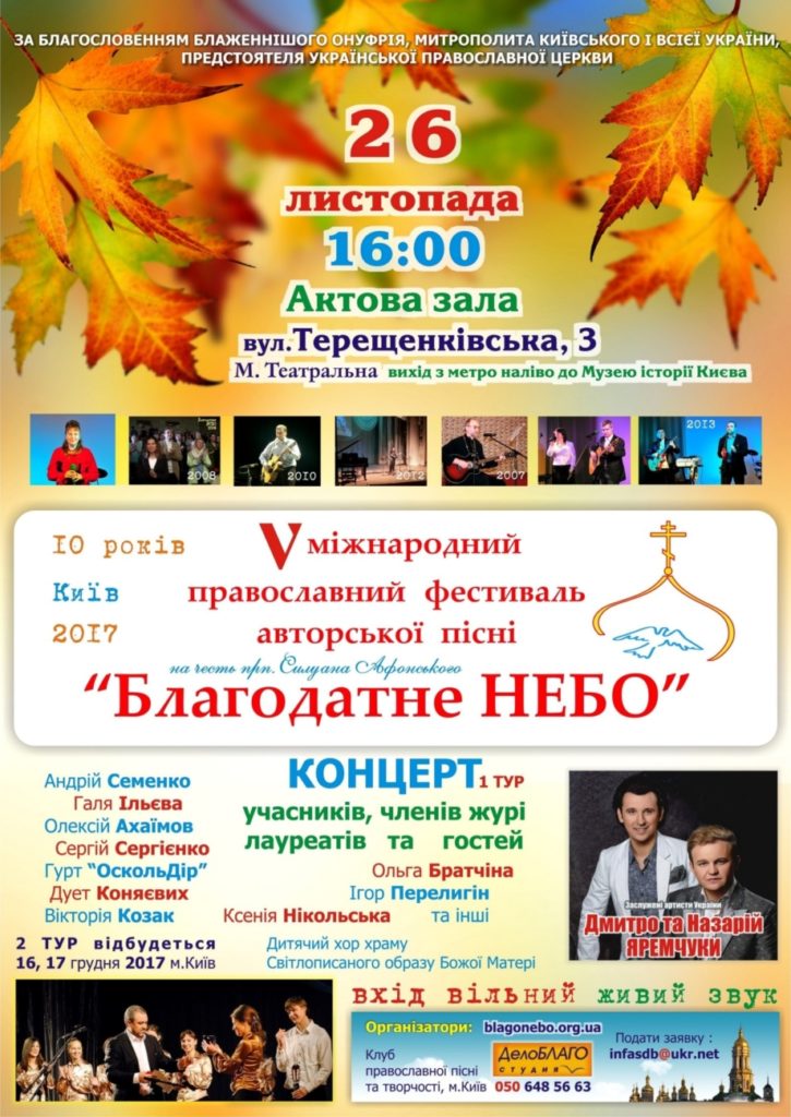 Перший тур Міжнародного православного фестивалю авторської пісні «Благодатне НЕБО» розпочнеться 26 листопада.