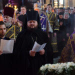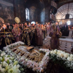 За утренею з чином погребіння Плащаниці Його Блаженству співслужили намісник Києво-Печерської обителі митрополит Вишгородський і Чорнобильський Павел, архієпископ Бучанський Пантелеімон, єпископ Білогородський Сильвестр та духовенство монастиря.