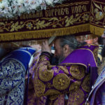 Після великого славослов’я Предстоятель очолив хресний хід з Плащаницею під поховальний спів “Святий Боже…”. Після одпусту Блаженніший Владика, священнослужителі та усі вірні з благоговінням підходили для поклоніння Господу перед Його Святою Плащаницею.