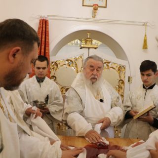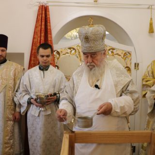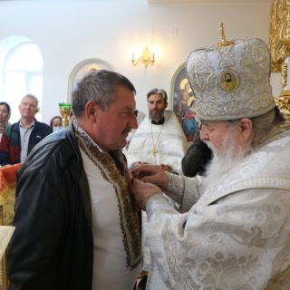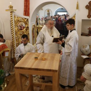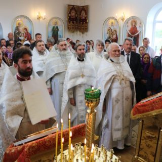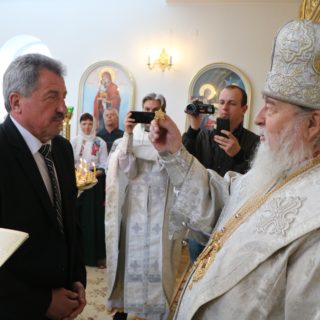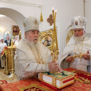 За Літургією правлячому архієрею співслужили секретар єпархіального управління протоієрей Миколай Ничипорук, благочинний Юр’ївського церковного округу протоієрей Іоанн Мороз, благочинний Павлоградського церковного округу протоієрей Павло Бурлай і духовенство єпархії.