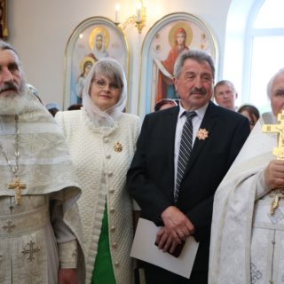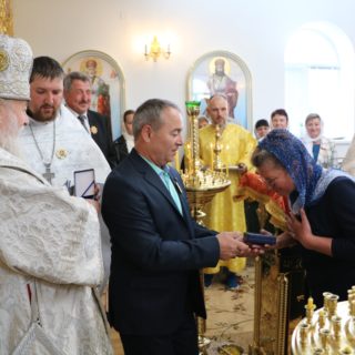 Також за заслуги перед Українською Православною Церквою, а також на знак подяки за працю і піклування про будівництво храму архіпастир вручив благодійникам церковні нагороди і Грамоти Предстоятеля УПЦ, якими вони були удостоєні від священноначалія. У відзначення історичної події митрополит Іриней вручив парафії архієрейську грамоту.