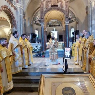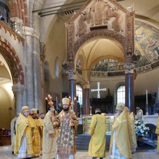Божественну літургію у базиліці Sant’Ambrogio очолив Патріарший екзарх Західної Європи митрополит Корсунський та Західноєвропейський Антоній.