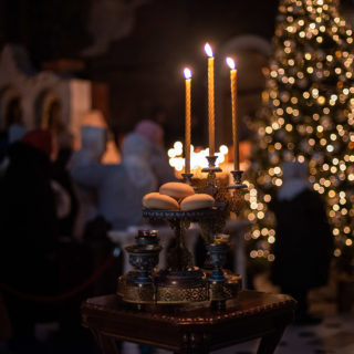 За богослужбовим уставом всенічне бдіння у Різдвяний і Хрещенський святвечір складається з великого повечір’я, літії з освяченням хлібів, святкової утрені з полієлеєм та 1-го часу.