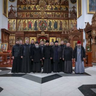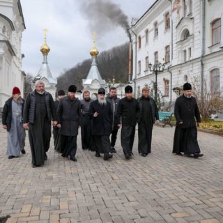 Представників Київської єпархії зустрів намісник Лаври митрополит Святогірський Арсеній, який розповів про життя Лаври під час активних обстрілів, провів екскурсію по монастирю, де біля Святогірської ікони Богородиці та Святогірських святих була піднесена молитва за мир в Україні.