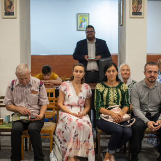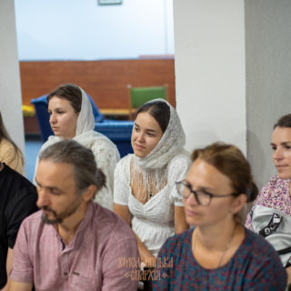 Архієпископ Віктор виступив зі вступним словом та відповів на питання присутніх. Вимушені переселенці з України з перших уст дізналися про сучасне становище Української Православної Церкви, про події навколо Києво-Печерської Лаври, про відстоювання прав вірян та захист храмів у Хмельницькій єпархії тощо. Архієпископ Георгій провів аналогії щодо сучасного важкого становища УПЦ з подіями, які мали місце у міжконфесійних відносинах на рубежі 80-90-х років минулого століття у Православній Церкві Чеських земель і Словаччини.