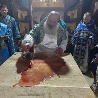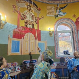 З благословення митрополита Хустського і Виноградівського Марка чин освячення престолу та Літургію очолив вікарій Хустської єпархії архієпископ Угольський Симеон. Владиці співслужили єпископ Рахівський Марк і духовенство єпархії.