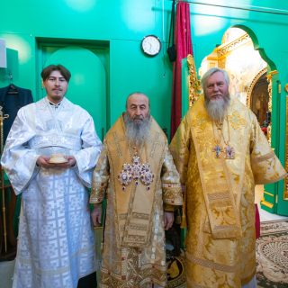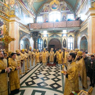 Предстоятелю співслужили керуючий справами УПЦ митрополит Бориспільський і Броварський Антоній, архієпископ Ірпінський Лавр, архієпископ Бородянський Марк, архієпископ Бишівський Кирил, братія обителі та гості у священному сані.