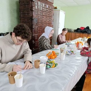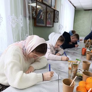 Коли священники перевіряли роботи, настоятелька обителі ігуменя Даниїла з сестрами пригостила дітей чаєм та солодощами.