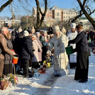 Наприкінці богослужіння владика окропив вірян святою водою та привітав усіх зі святом Богоявлення.