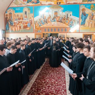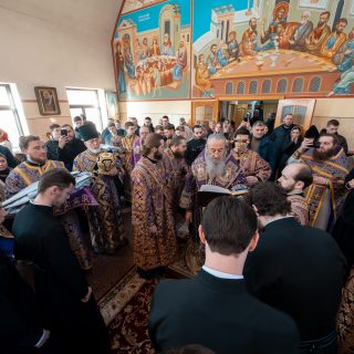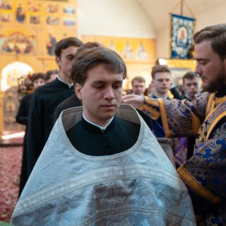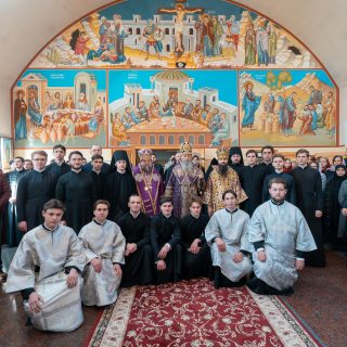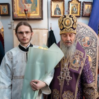 Перед Божестенною літургією у храмі в імʼя преподобного Іоанна Дамаскина Предстоятель та ректор Київської духовної академії звершили чин хіротесії у чтеці над студентами 4-го класу Київської духовної семінарії та I курсу Київської духовної академії.