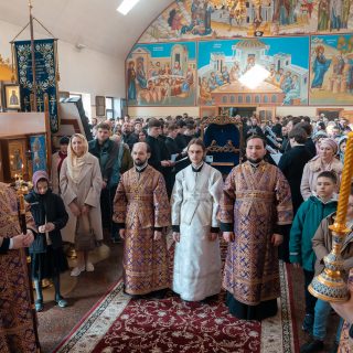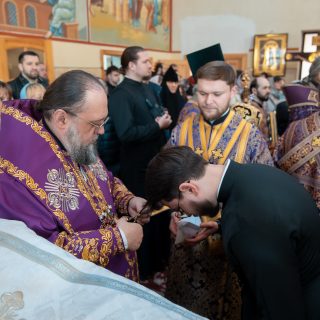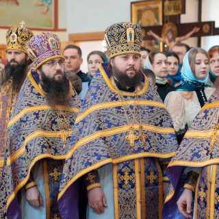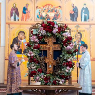 Наприкінці Літургії відбулося поклоніння Чесному Хресту, після чого Архіпастир привітав віруючих з Хрестопоклонною неділею та благословив усіх.